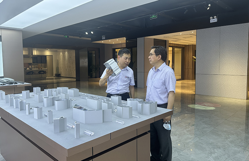 在公司展廳,豪門鋁業(yè)副總經(jīng)理劉守奎為李教授詳細(xì)介紹了公司的產(chǎn)品及發(fā)展情況。